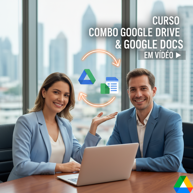 Com o Curso Combo Google Drive e Google Docs em Vídeo, você vai aprender passo a passo, na prática, como usar cada recurso dessas plataformas que são essenciais para estudantes, profissionais, empreendedores e qualquer pessoa que queira ganhar tempo e eficiência no dia a dia.